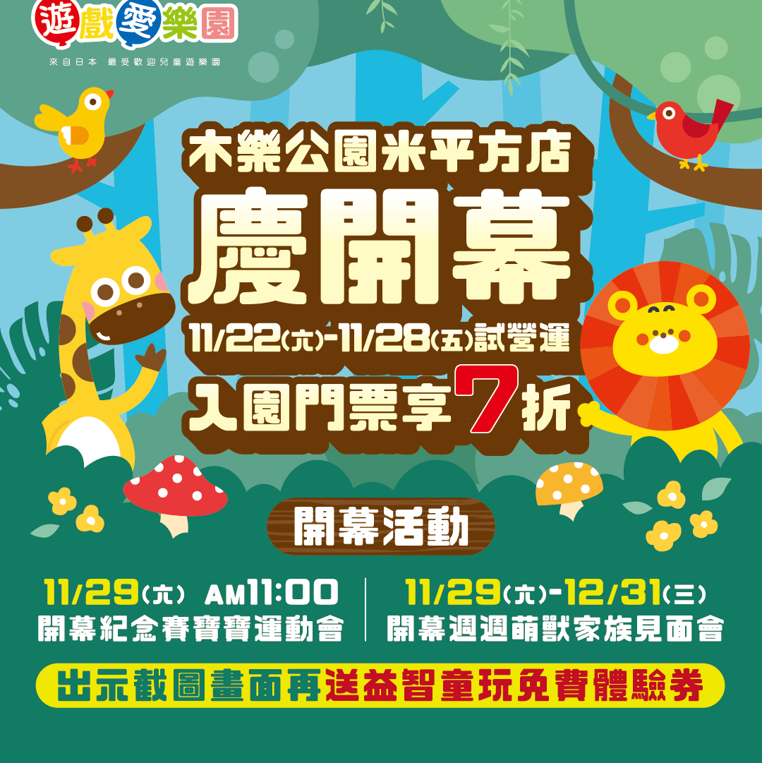 凡於試營運期間入園,即享 門票 7 折優惠!