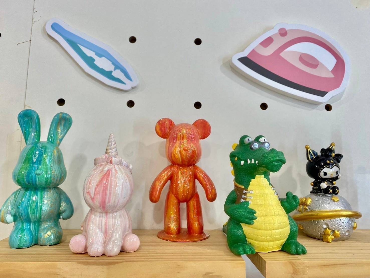 自由流動的顏料,在畫布或是公仔上大膽創作屬於自己的作品!