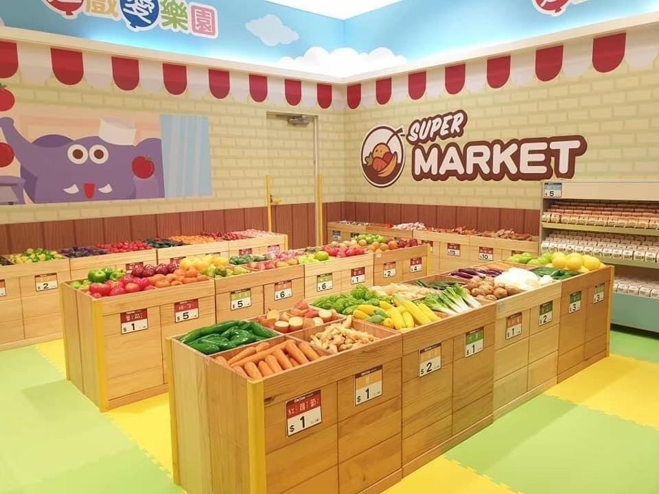 - 除了齊全的遊戲設施,還有幫助小朋友們學習辨別蔬菜水果、顏色豐富的買菜區